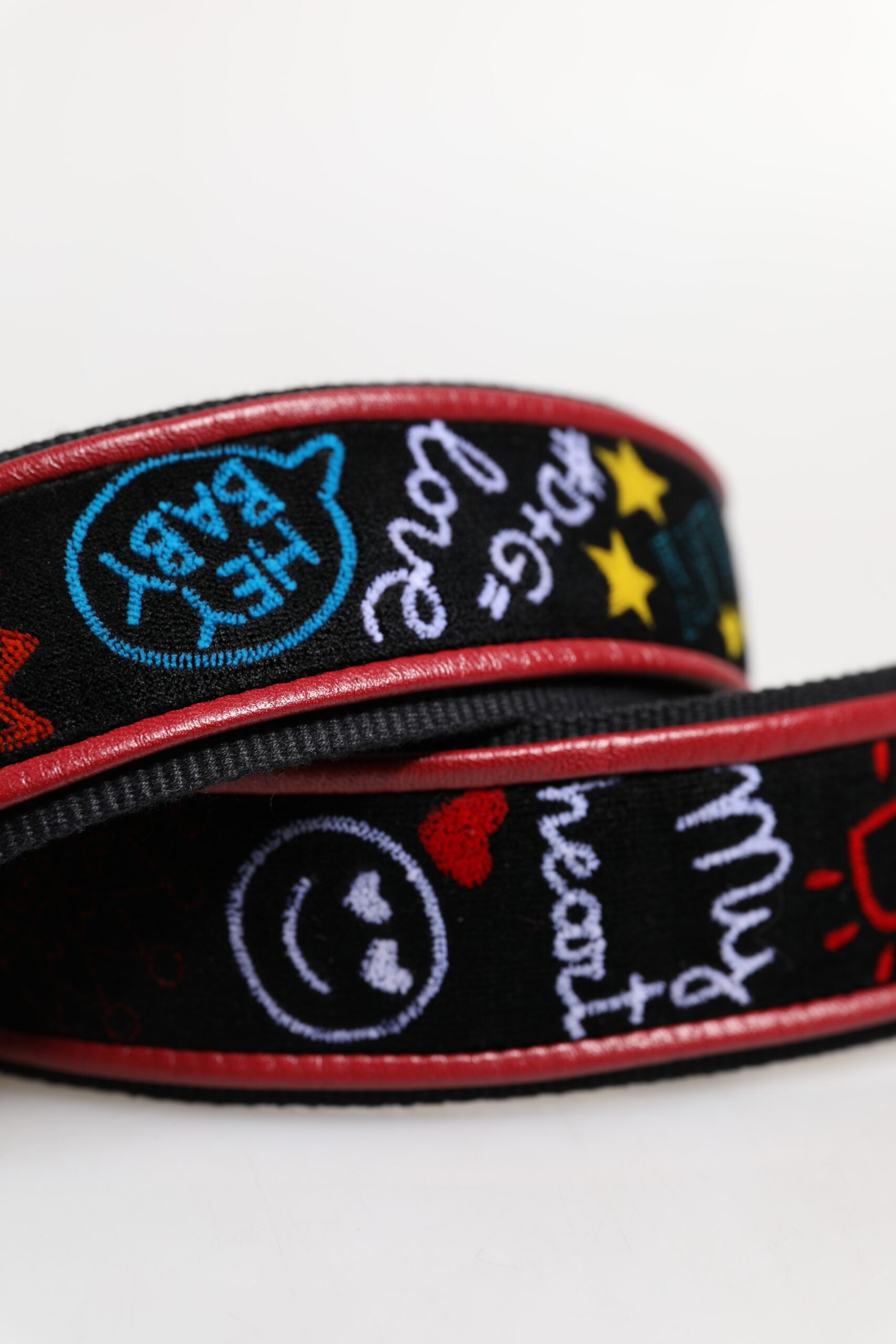 Black Cotton Printed Women Bag Accessory Shoulder Strap