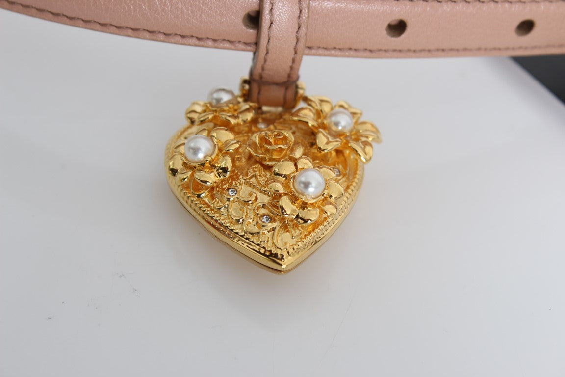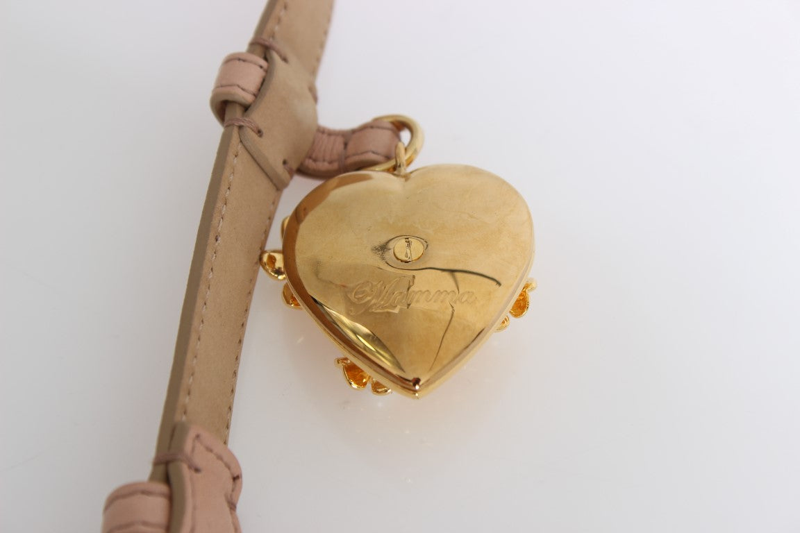 Beige Leather MAMMA Gold Heart Belt