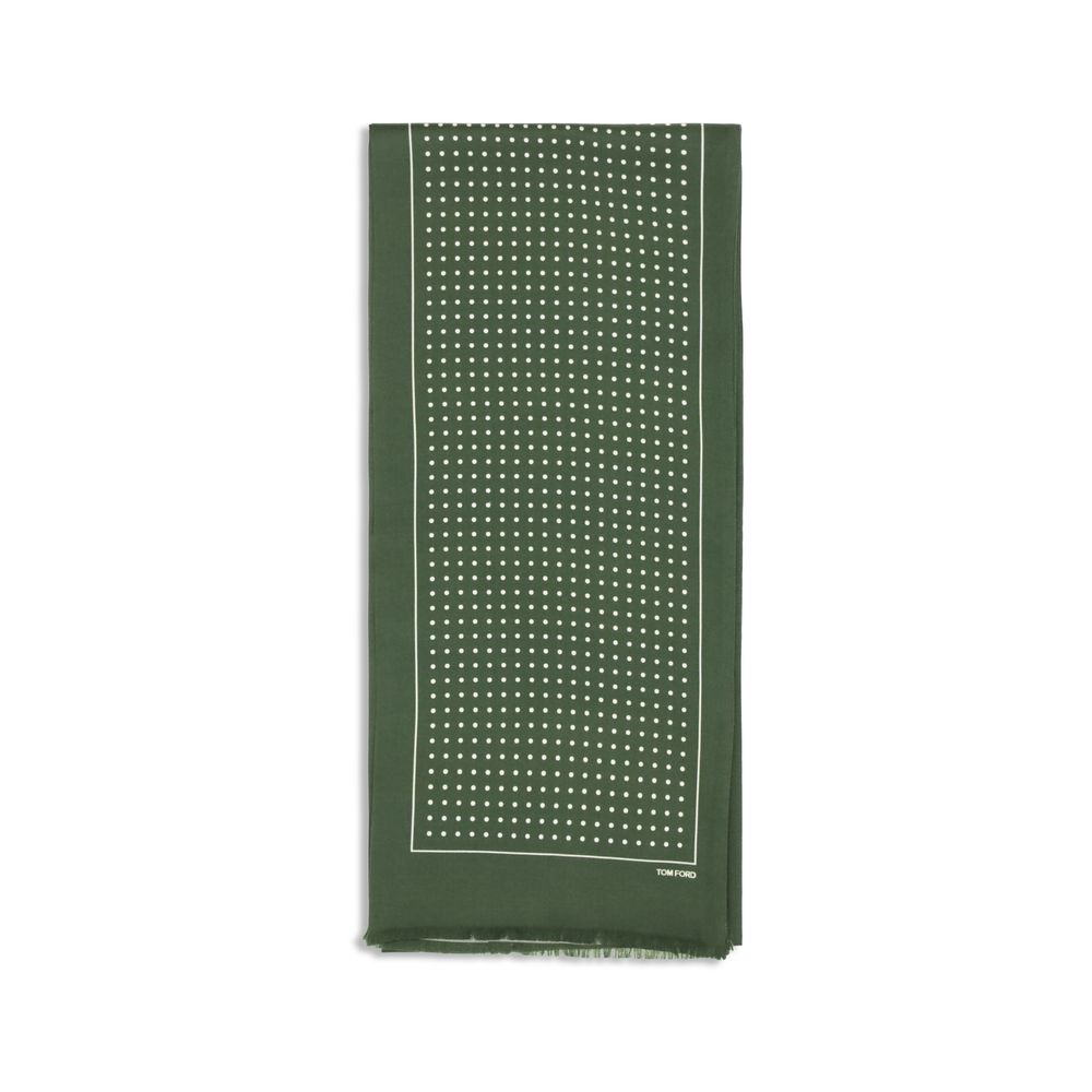 The polka dot Scarf by Tom Ford is made of silk and stands out for its rectangular shape and elegant design. Finished with frayed edges, it is completed by the logo positioned at the bottom, adding a discreet and refined detail to the model.