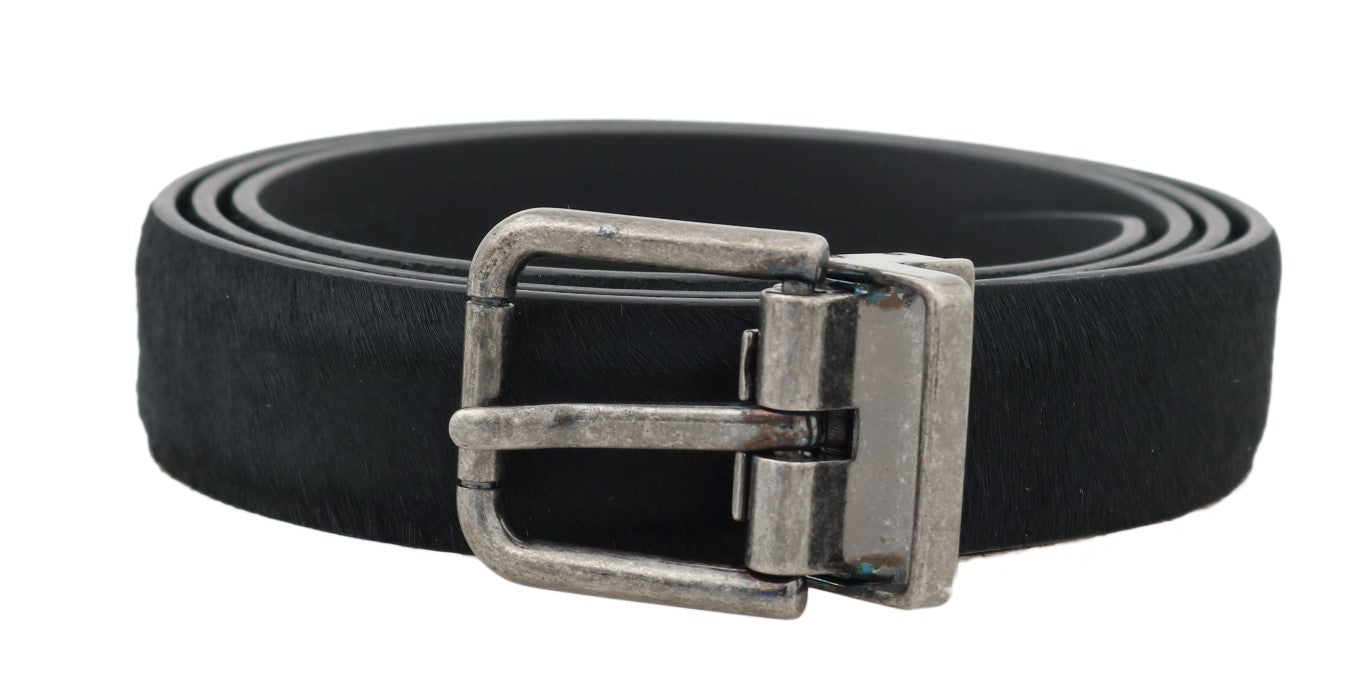 Black Leather Fur Silver Buckle Belt