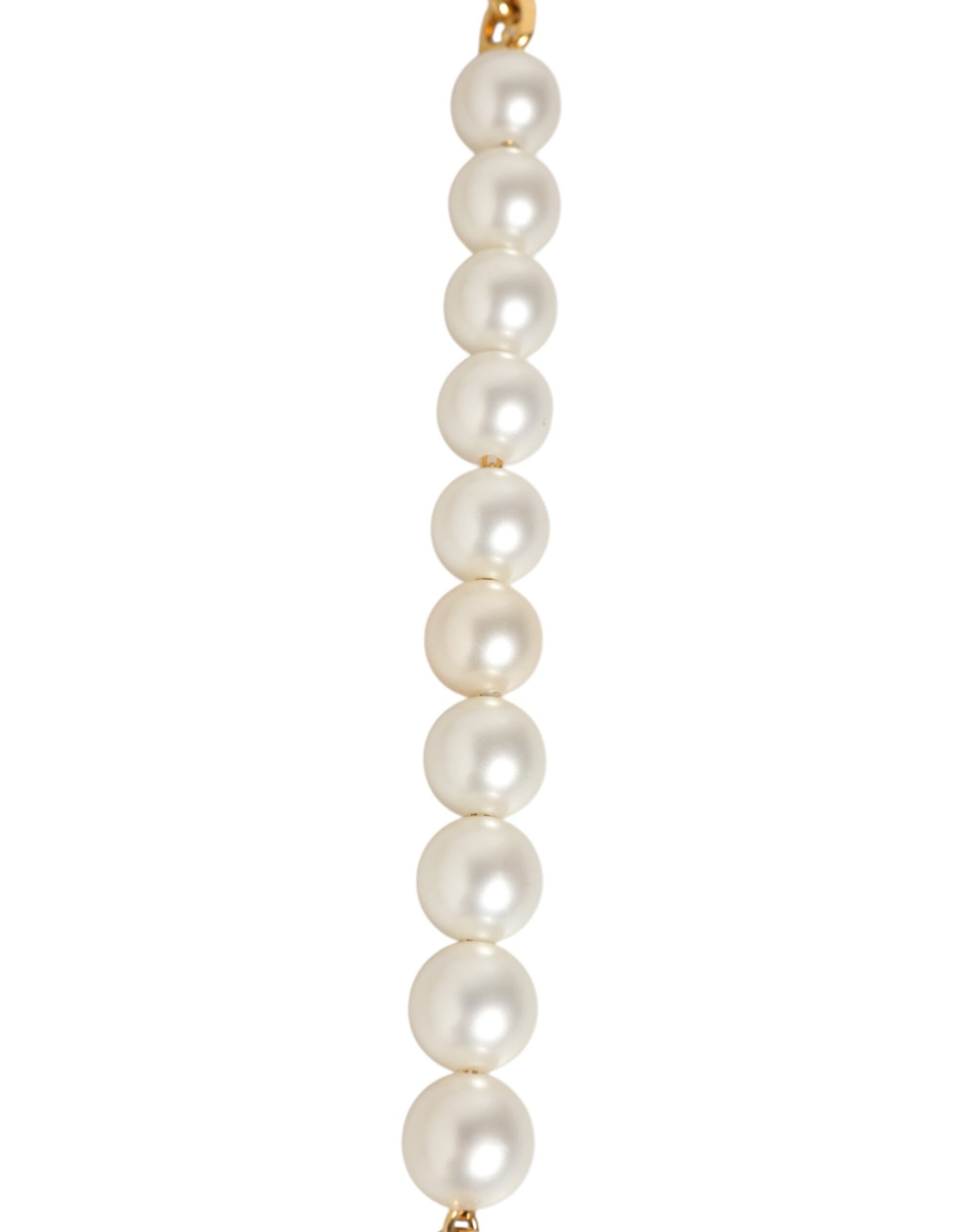 Gorgeous brand new, 100% Authentic Dolce & Gabbana shoulder strap. Crafted in Italy, this piece combines black leather, gold-tone chain links, and oversized pearl accents, complete with the iconic DG logo charm. A luxurious accessory to elevate any bag.