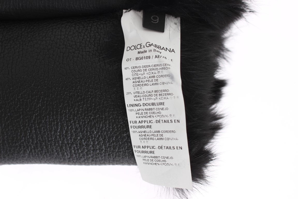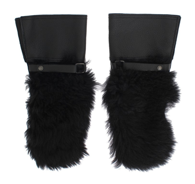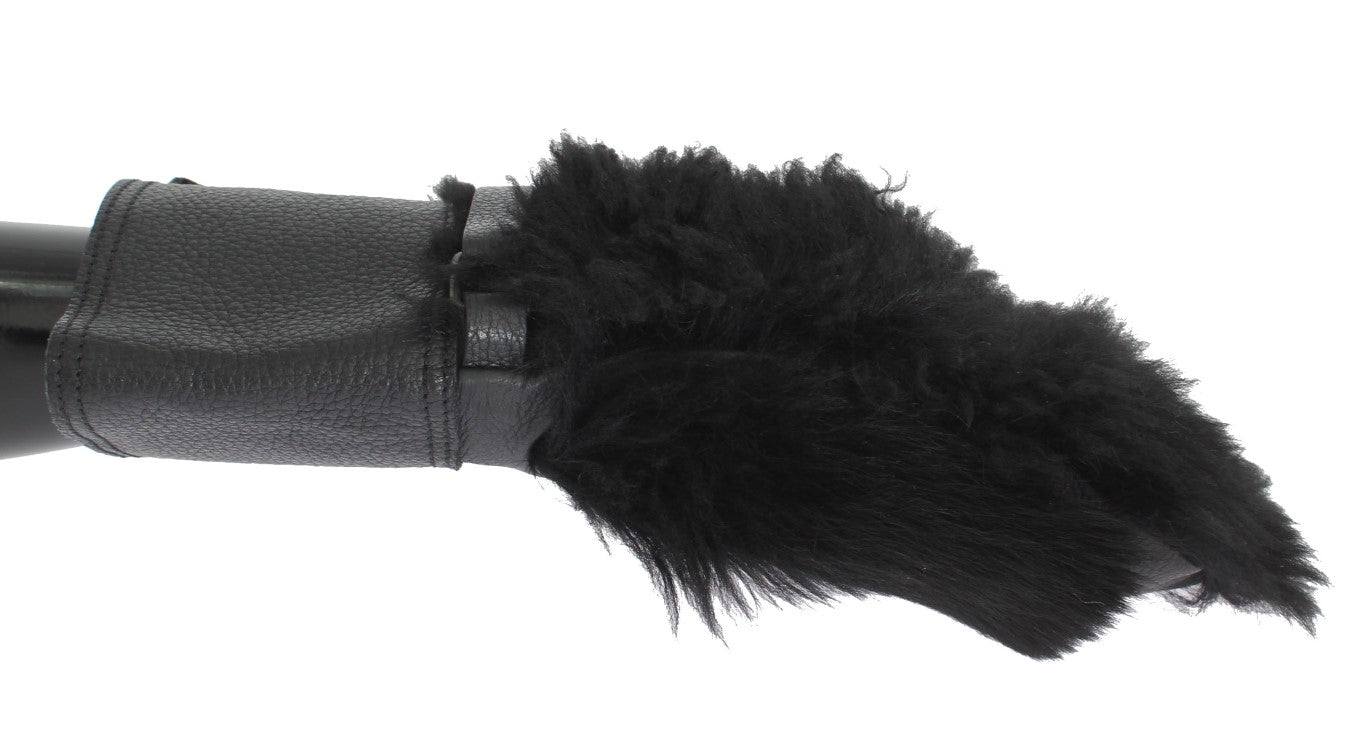 Black Leather Sheepskin Shearling Fur Gloves