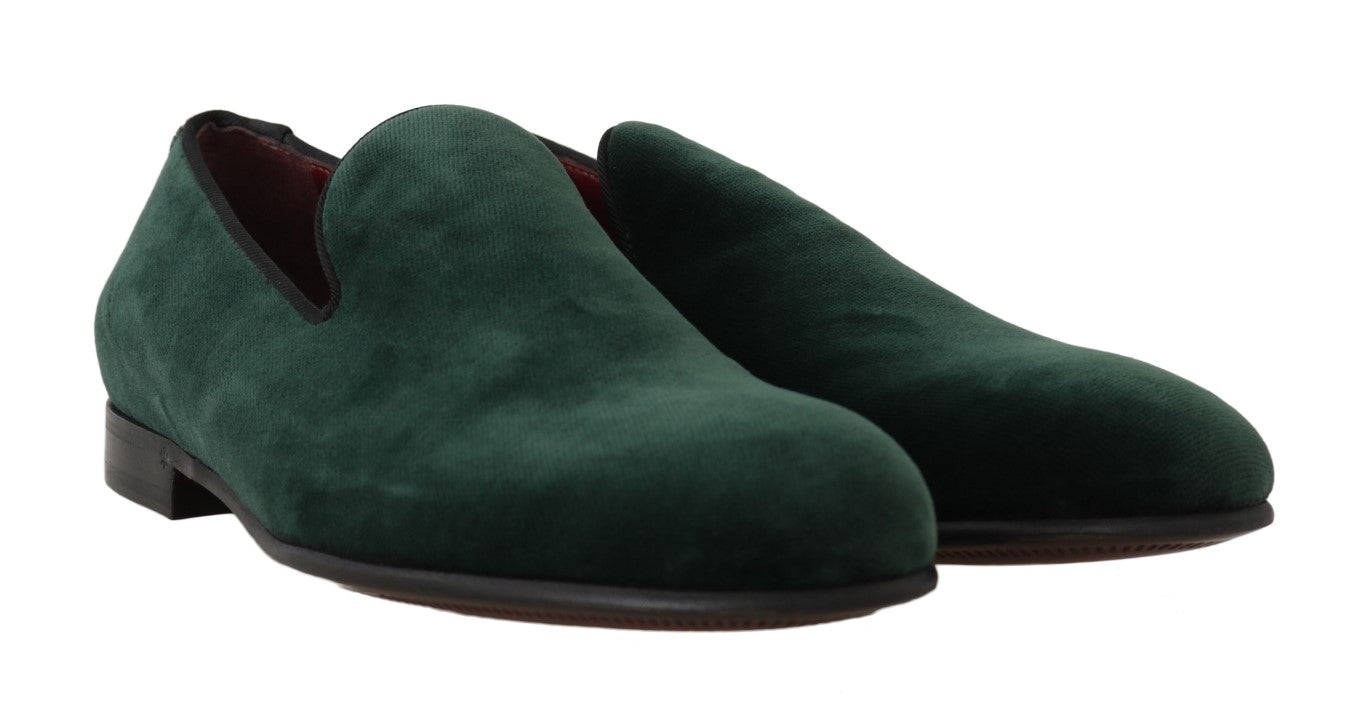 Dolce & Gabbana Green Suede Leather Slippers Loafers